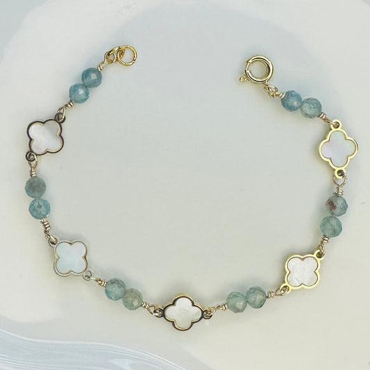 Prehnite Gemstone Bracelet with 18k Gold Plated Bar