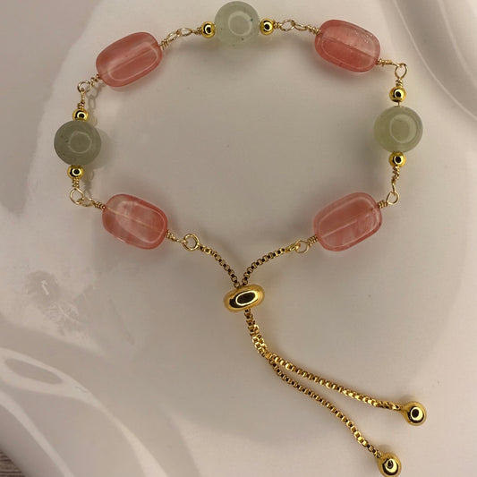 Harmony in Bloom – Rose Quartz & Green Jade Bracelet